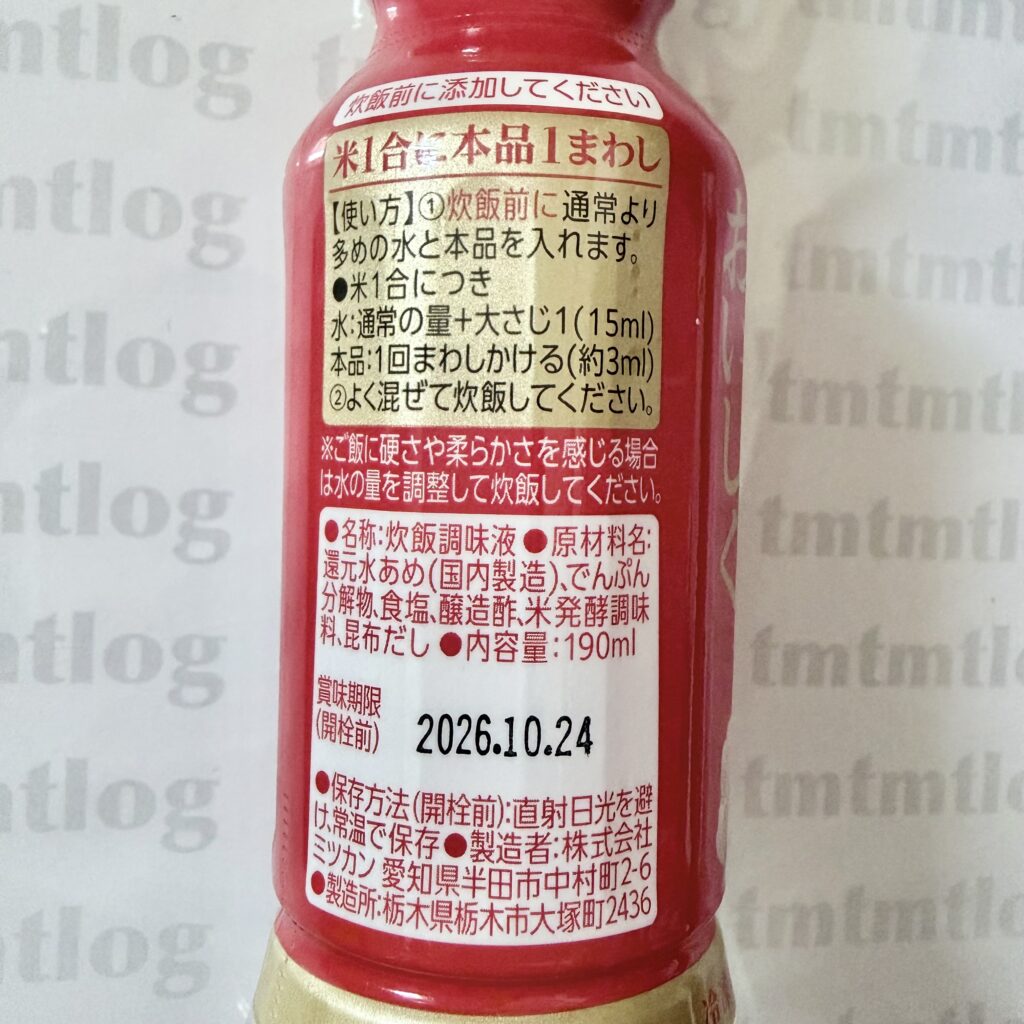 炊きあがりの香りや味は普段と変わらず。普段より多めの水+液体の本品も入れたのに、お米はべちゃっとしてないのが不思議でした。冷凍→解凍したものも食べましたがいつもよりべちゃっとしてない気がしなくもない。