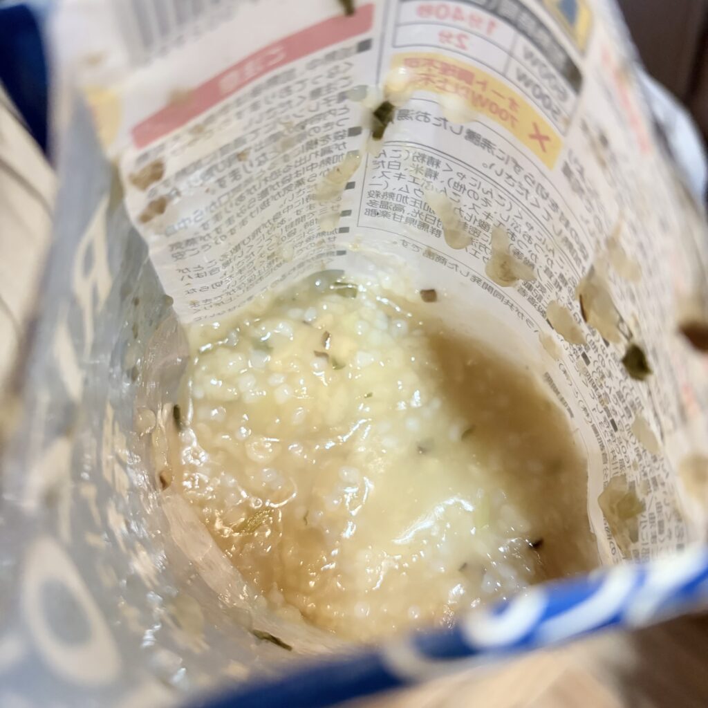 おかゆみたいな感じかな、、味薄そう…と思ったけどお米サイズのこんにゃくがめちゃくちゃいい仕事をしてくれる!食感が食べ応えを感じさせてくれます。